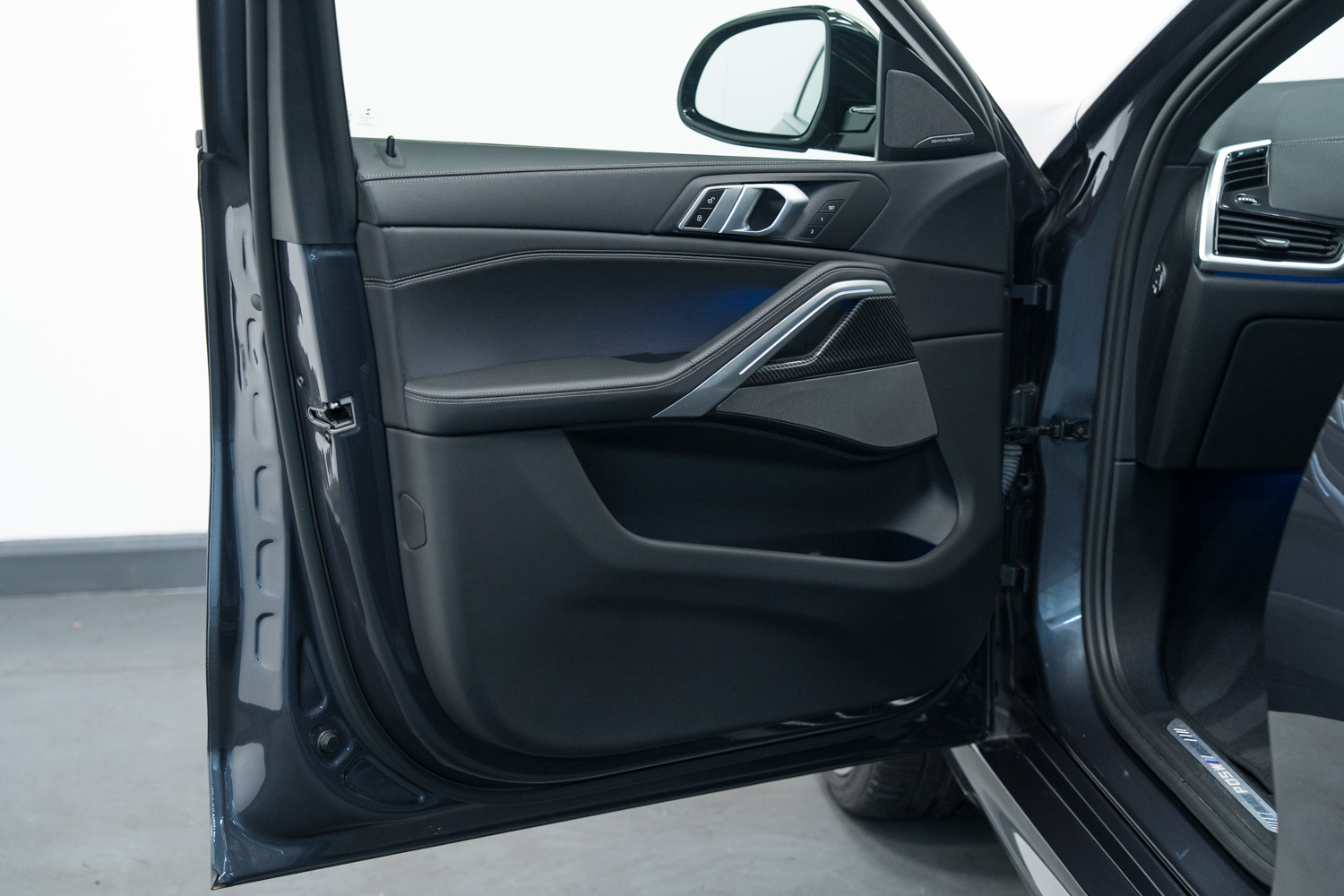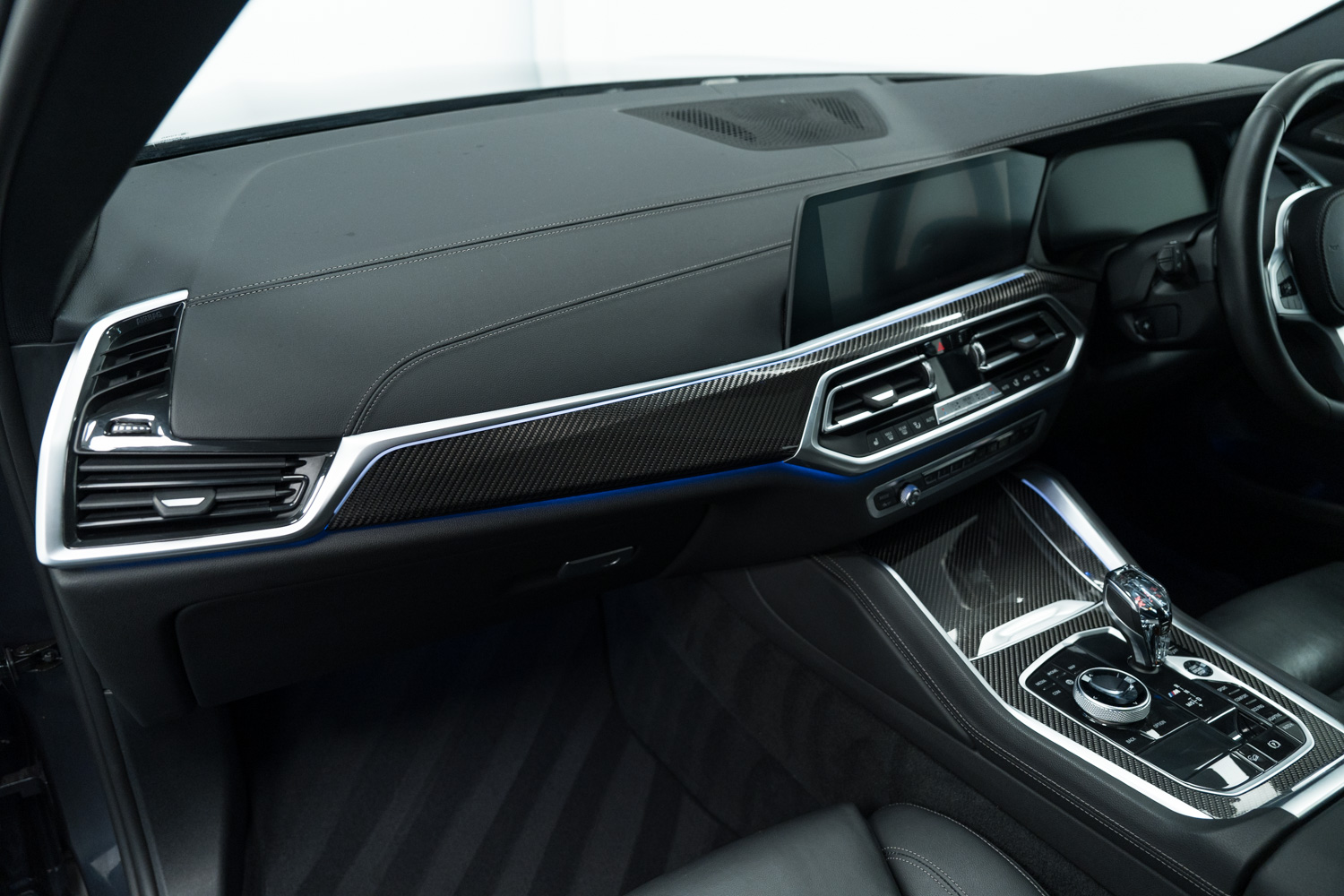 Fantastic options list Inc Panorama Glass Roof Sky Lounge, Comfort Package, Technology Package, Interior Trim - Carbon Fibre, Glass Application - Crafted Clarity for Interior Elements, BMW Kidney Iconic Glow, Sun Protection Glazing, Perforated Vernasca Leather - Black-Black, Electrically Folding Door Mirrors, Automatically Dimming Rear View & Side Mirrors, Electric Memory Front Seats, Auto Lights & Wipers, Adaptive Multi Beam LED Headlights, Digital Dash, Multi Function Steering Wheel, Speed Limiter, Cruise Control, Voice Control, Heated Front & Rear Seats, Wireless Phone Charging, Harman Kardon Stereo, Dual Zone Climate Control, Front & Rear Parking Sensors, 360° Cameras, Satellite Navigation, Bluetooth Phone Connection, Apple CarPlay, Android Auto, Auto Hill Hold Assist, Ambient Lighting, DAB Radio, Hill Descent Control, Power Tailgate, Speed Limit Assist, Lane Departure Warning, Tyre Pressure Monitoring System (TPMS), Instrument Panel - Leather, M Multifunctional Sport Seats, USB & USB-C Inputs, Heated & Chilled Cup Holders, 22in Alloy Wheels.