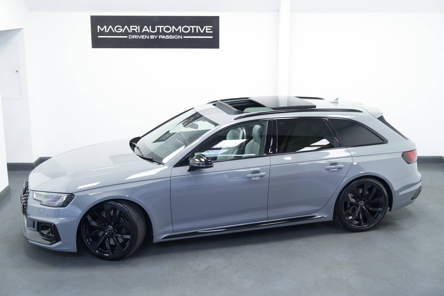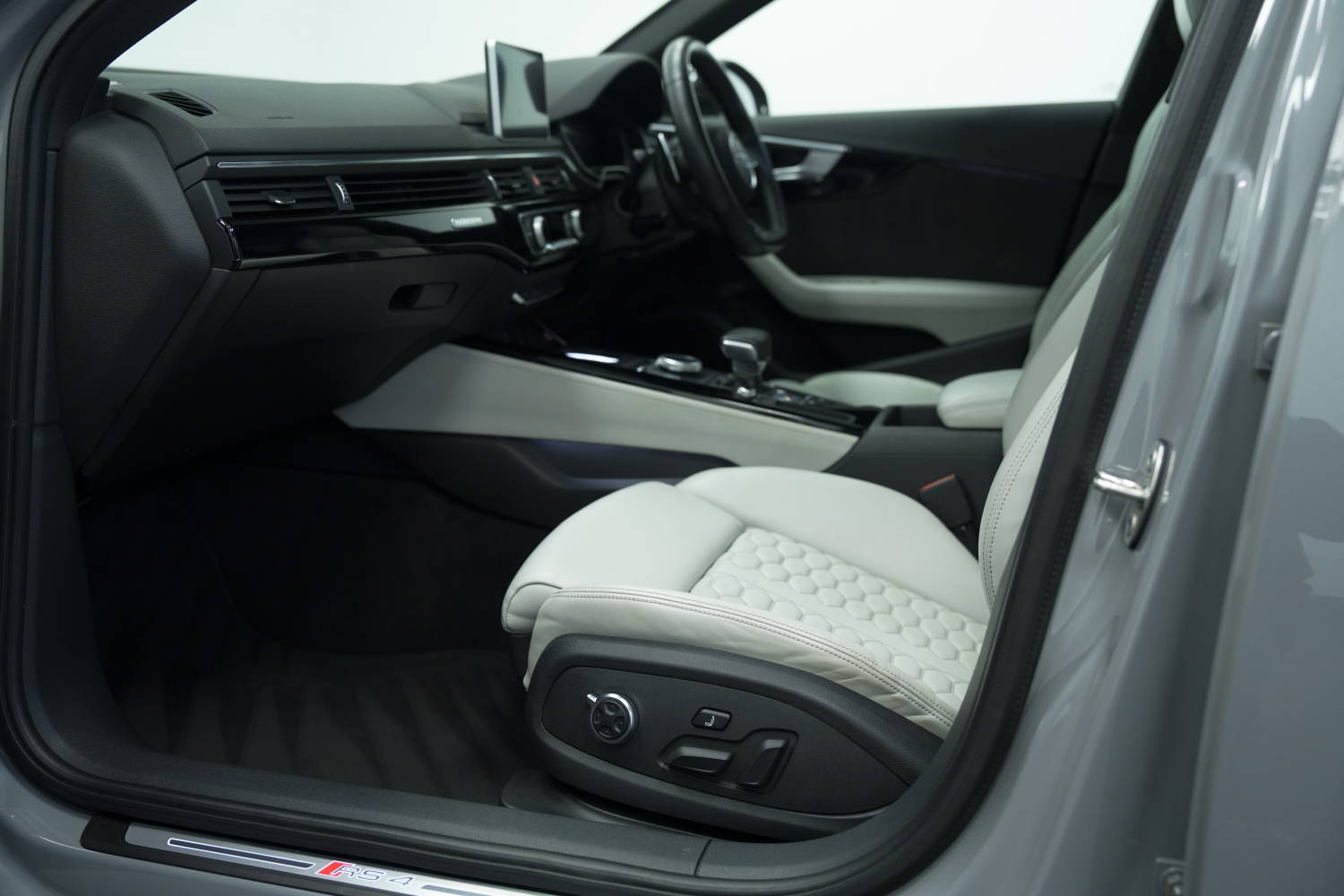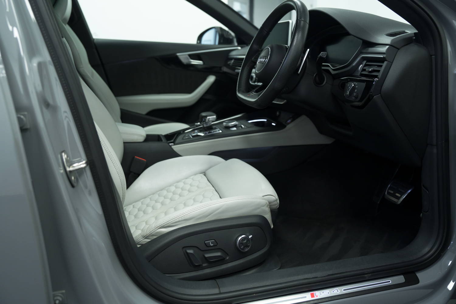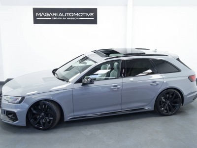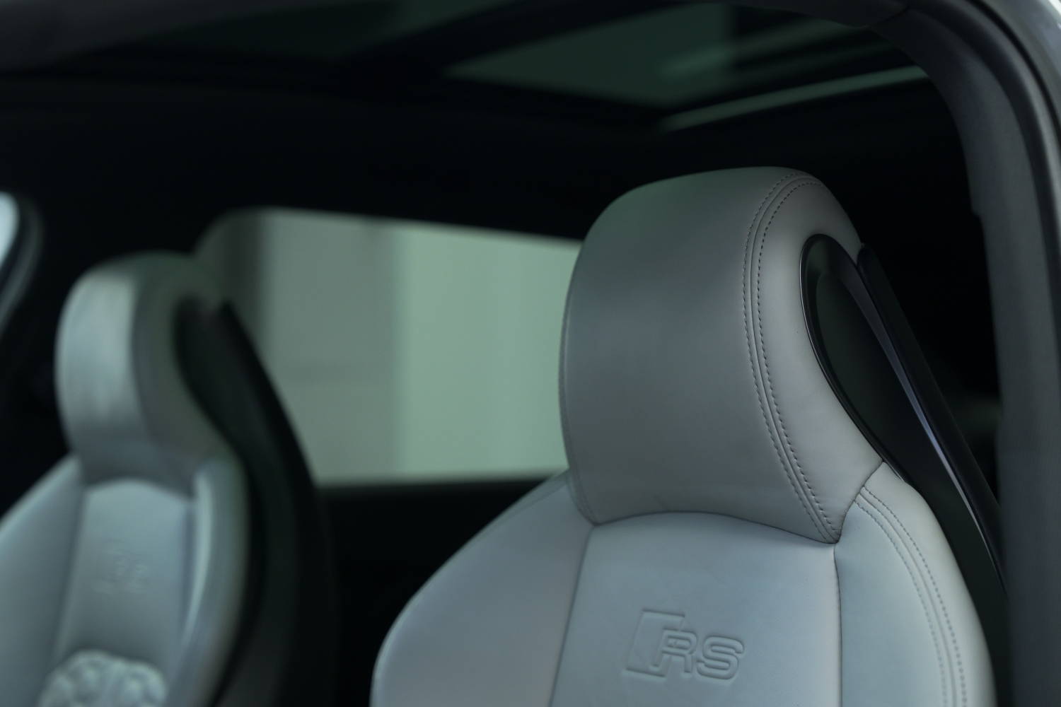 Fantastic options list inc. Rear View Camera, Tyre Pressure Monitoring System, RS Matrix LED Headlights with LED Rear Lights and Dynamic Front and Rear Indicators, 20in Alloy Wheels - 5-Twin-Spoke Design Forged in Anthracite Black, Black Styling Pack, Panoramic Glass Sunroof, RS Sports Exhaust System, Driver Assistance Pack - Tour, Electrically Adjustable Front Seats with Memory Function for Drivers Side, Dynamic Steering, RS Sports Suspension Plus with Dynamic Ride Control - DRC, Electrically Folding Door Mirrors, Auto Dimming Rear View & Side Mirrors, Auto Lights & Wipers, Multi Function Steering Wheel, Voice Control, Bluetooth Phone Connection, Satellite Navigation, Adaptive Cruise Control, Speed Limiter, Audi Side Assist, Audi Active Lane Assist, Background Lighting, Auto Hill Hold Assist, 3 Zone Climate Control, Heated Front Seats, USB & AUX Inputs, Sliding Front Arm Rest, Audi Sport Differential, Privacy Glass, Power Tailgate, Bang & Olufsen Surround Sound Stereo, Virtual Cockpit, Fine Nappa Leather - Lunar Silver, Privacy Glass and Front Acoustic Glazing, Comfort and Sound Package.