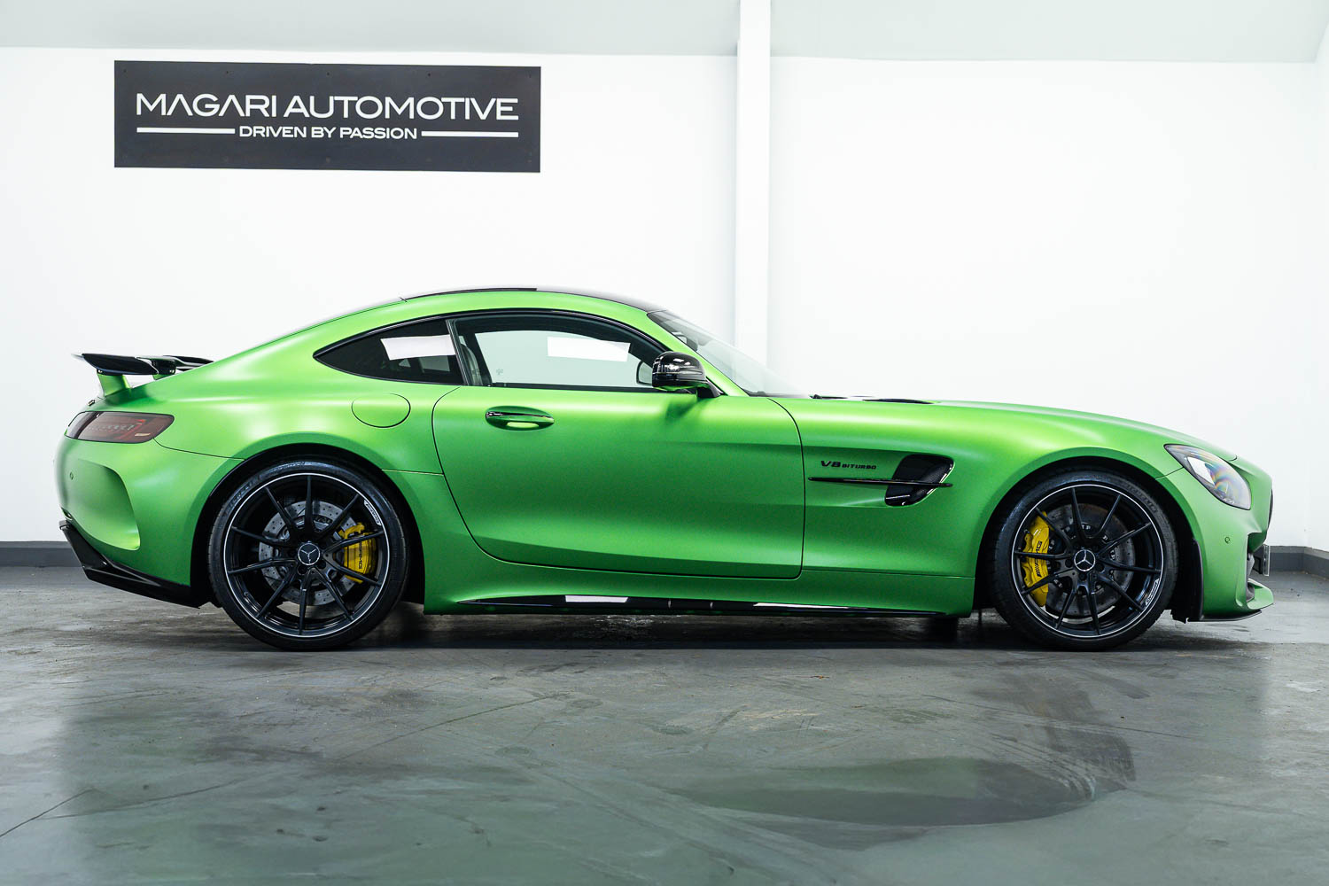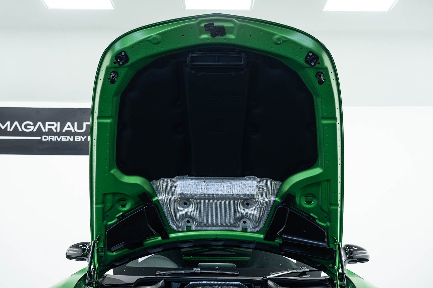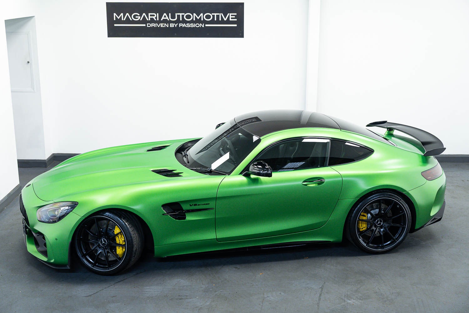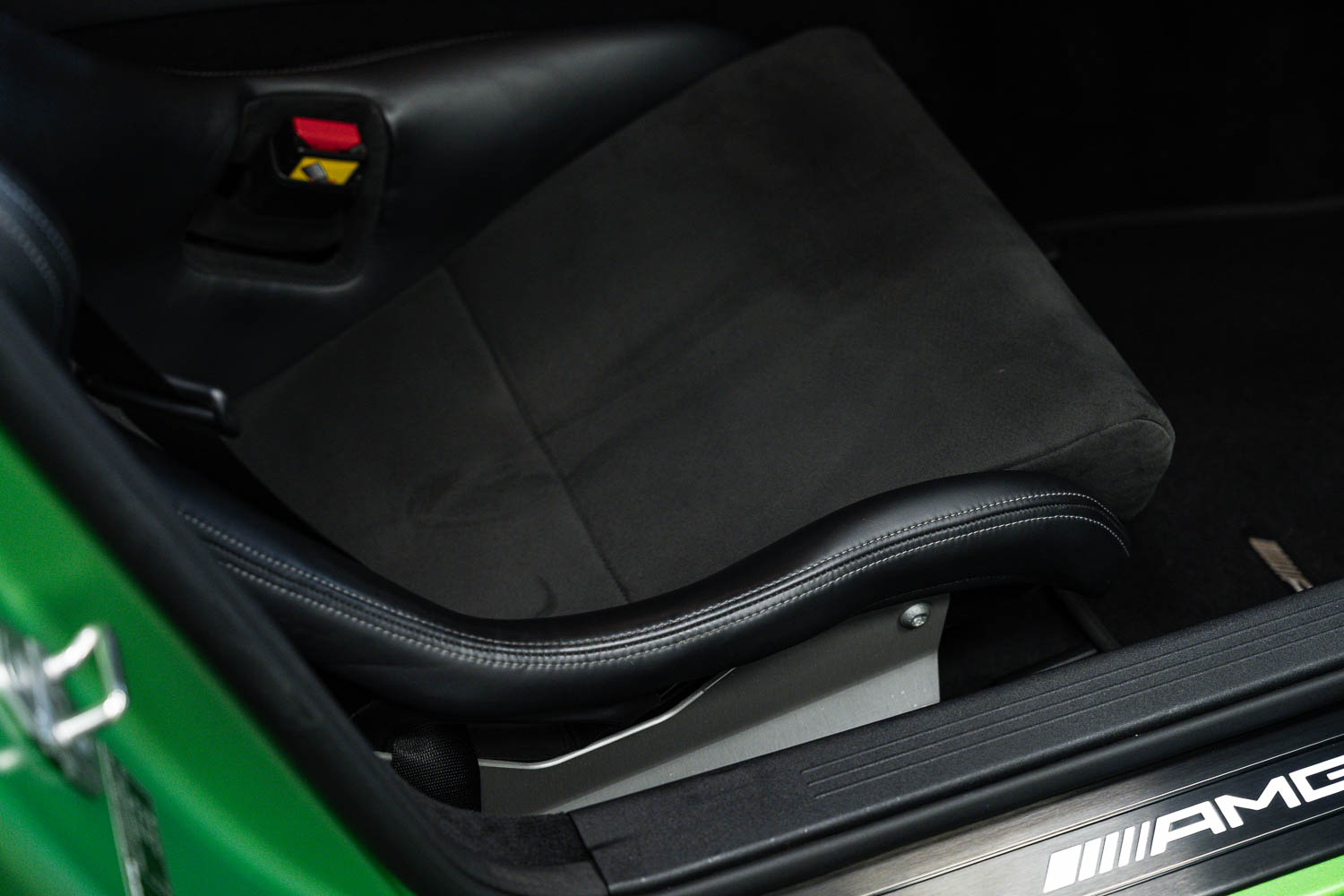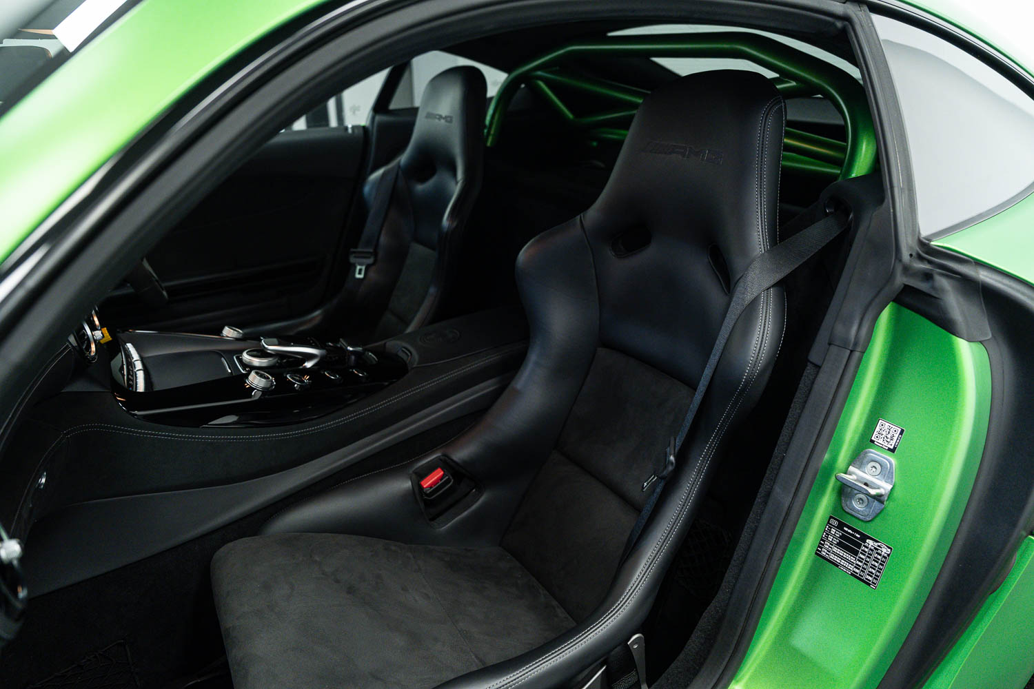 Finished in Green Hell Magno with 1/2 leather interior, full Mercedes-Benz service history, last serviced at 24,004 miles on 14/04/2025, gearbox service carried out at 11,524 miles on 29/12/2022, spark plugs replaced at 17,774 miles on 30/04/2024, MOT until 8th May2026 (no advisories), AMG performance bucket seats with 4 point harnesses (harnesses are present, just not shown in the image suite), alcantara AMG performance steering wheel, gloss black bonnet blades, immaculate condition all round, full PPF fitted, matching Michelin tyres all round with 5-6mm tread, Ghost immobiliser.