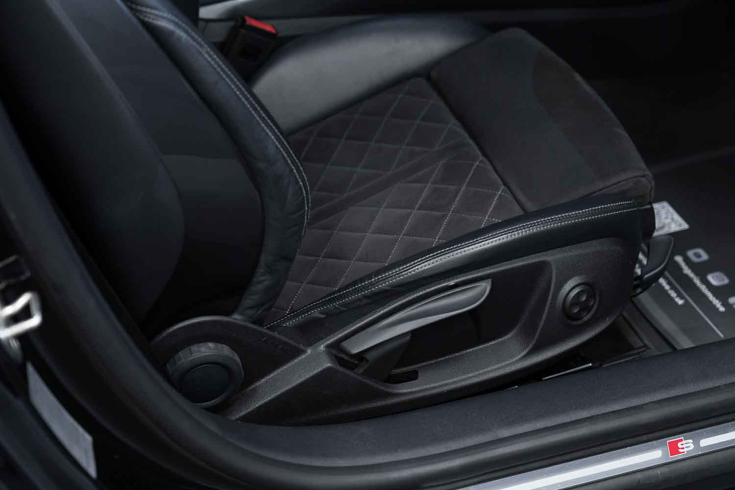 Lovely options list Inc. Alcantara-Leather - Super Sport Seats - S Embossed Logo - Black with Dark Silver Stitching, Heated Front Seats, Auto Lights & Wipers, Auto Dimming Rear View Mirror, Virtual Cockpit, Multi Function Steering Wheel, Voice Control, Cruise Control, Speed Limiter, Auto Hill Hold Assist, DAB Digital Radio Reception, Bluetooth Phone Connection, Satellite Navigation, Dynamic Steering, USB & AUX Inputs, Audi Phone Box - Wireless Phone Charging, Audi Drive Select, Rear Parking Sensors, Privacy Glass, 20in Alloy Wheels.
